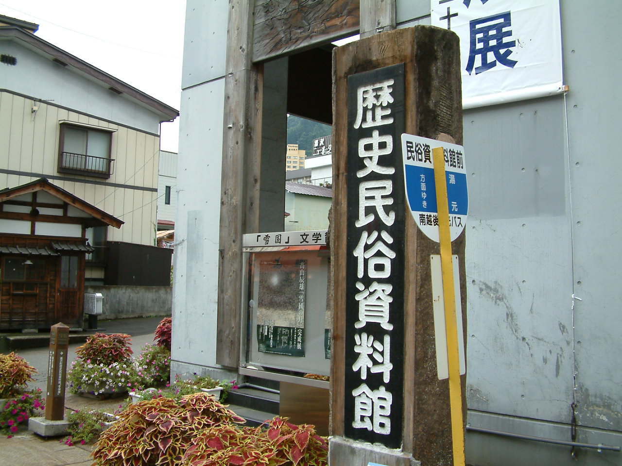 | こちらは『湯沢町歴史民俗資料館雪国館』です。隣りには、無料の足湯スペースの『足湯ポケットパーク』があり、無料で足湯に浸かる事が出来ます。 『ゆきんこ』の銅像が歓迎をしてくれています。 |