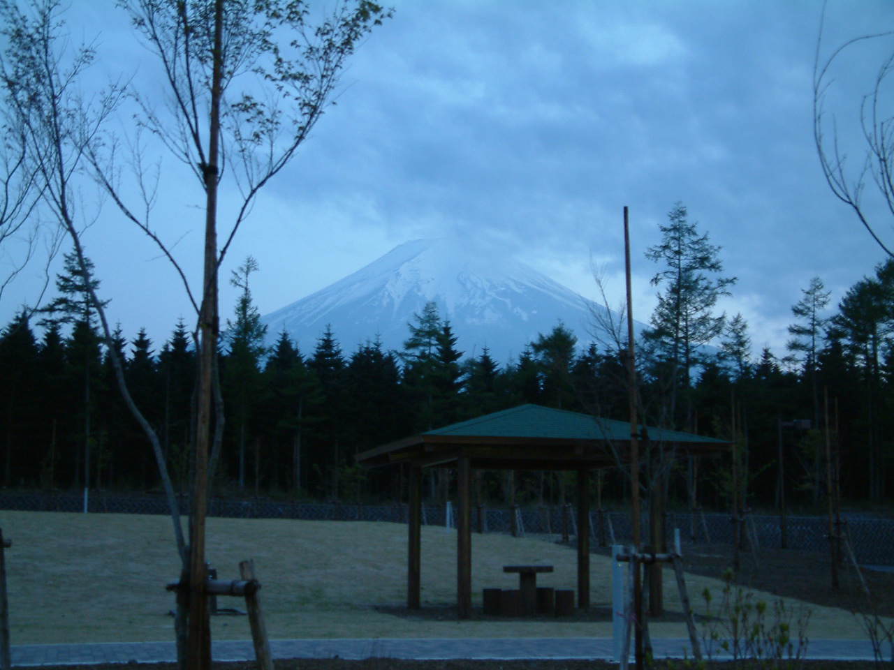 | 駐車場の横には『富士山親水公園』の大きな広場があります。ここから富士山が見れます♪到着をしたのが夕方でしたので、ギリギリ富士山の写真を写すことが出来ました。 | |