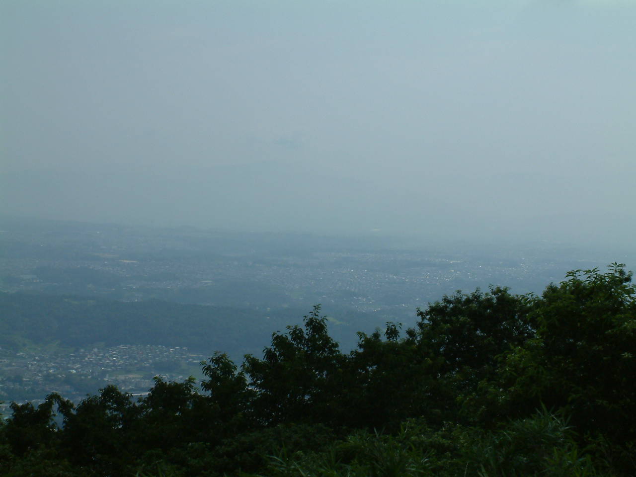 | 今回の目的の山頂からの景色を見える所に来ました。少しガスっていた為に、霧ががった景色ですが奈良の盆地らしい景色が良く見えました。 | |