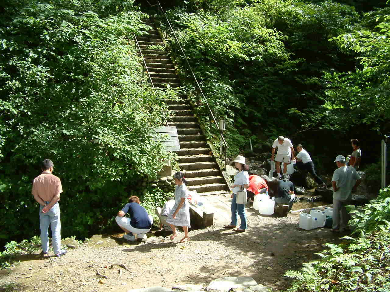 | 多くの方がポリタンクを持って湧水を汲みに来ていました。名水なので、そのまま飲用出来る自然のおいしい水です。 | |